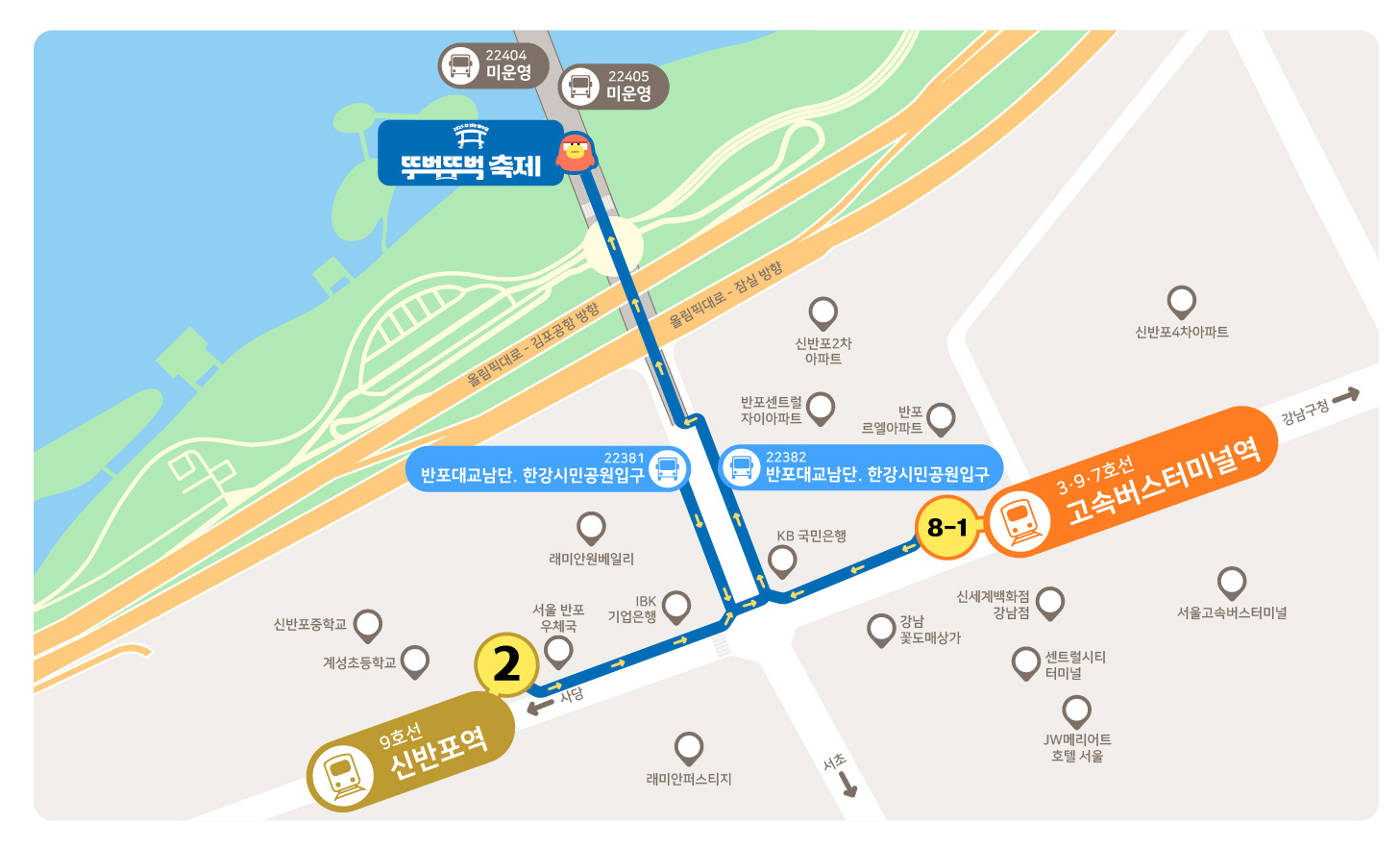 장소: 한강 잠수교 전 구간 (차 없는 잠수교 운영)