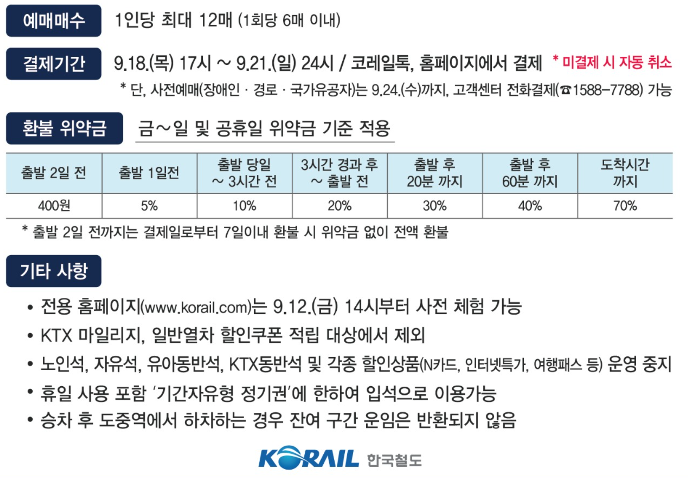 - 예매 기간 동안은 1인당 최대 6매까지 가능(왕복 포함)