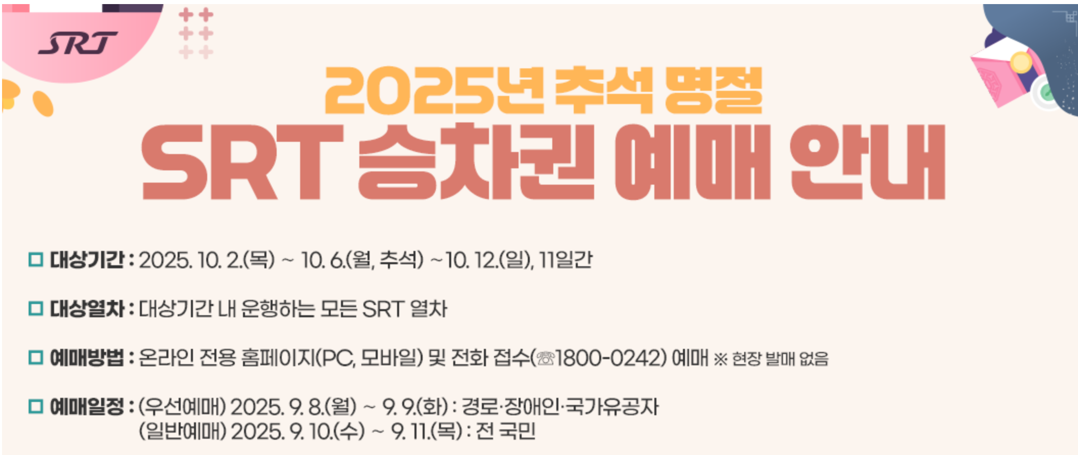 📅 2025 추석 기차표 예매 일정