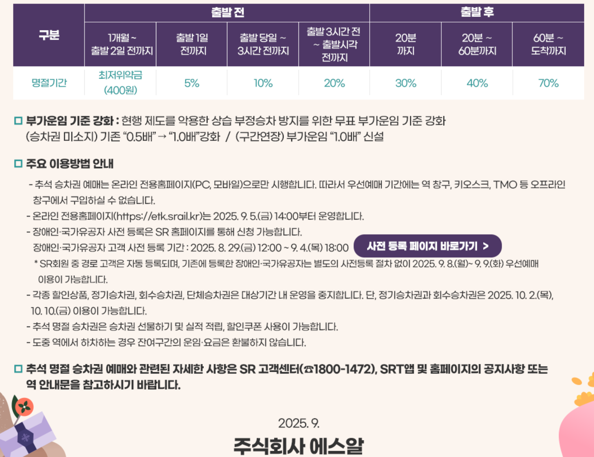 특히 올해는 모바일 비중이 크게 늘어날 것으로 예상되므로, 앱을 미리 설치하고 로그인까지 완료해두는 것이 중요합니다. 또, 예매 첫날은 경부선, 두 번째 날은 호남선처럼 노선별로 날짜가 다르므로 반드시 공식 일정을 확인해야 합니다.
